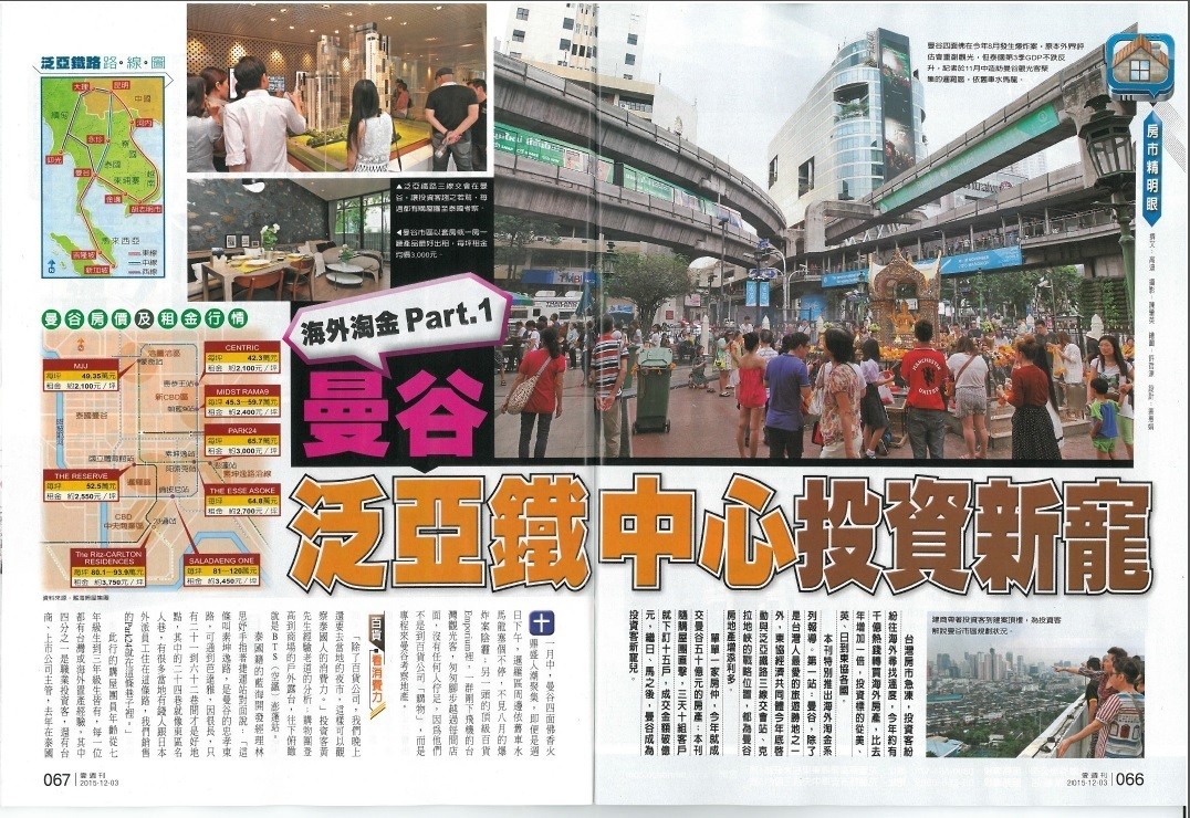 東南亞最高125層的摩天大樓在曼谷,東南亞唯一的四季、麗池卡登住宅在曼谷,外資年投入金額約新台幣1兆、年成長達95%。